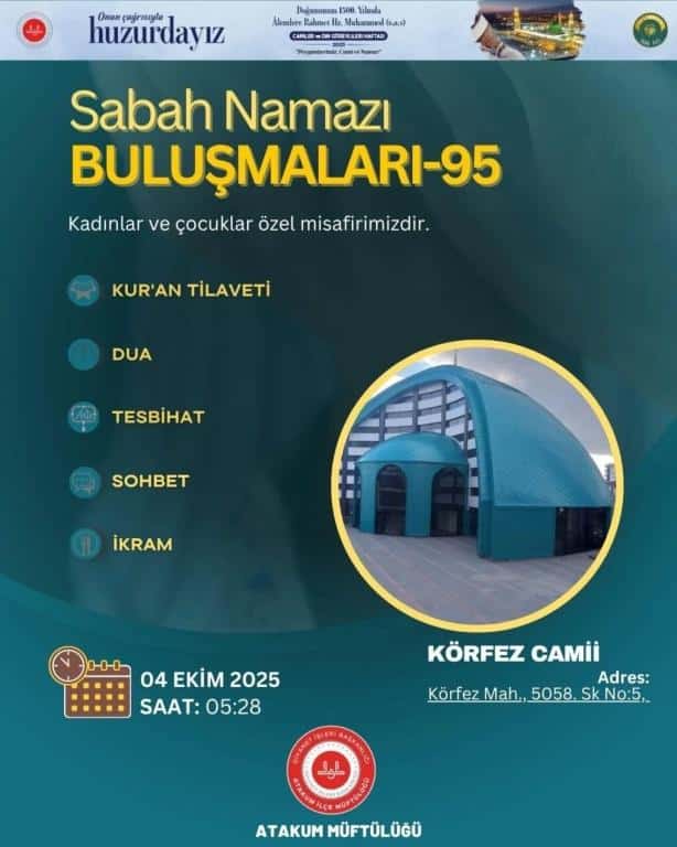 Atakum Müftülüğünce düzenlenen her hafta farklı camide sabah namazı buluşmalarına bu hafta okulumuz pansiyonunda kalan kız ve erkek öğrencilerimizle katılım sağladık.